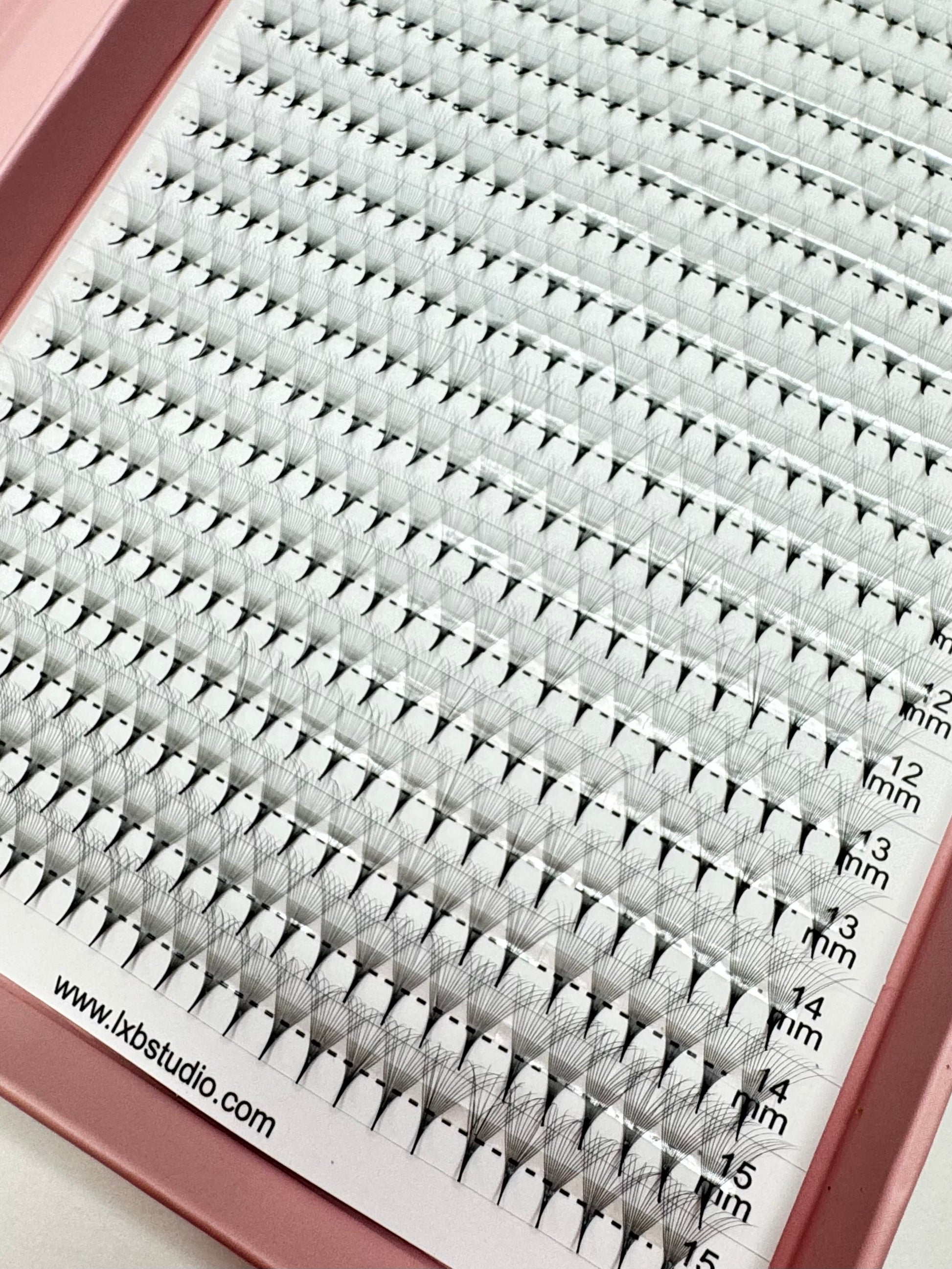 Take your lash sets to the next level with our LXB Studio Ultra Black ProMade Fans—the perfect balance of boldness and ease. These fans are designed with ultra-thin bases for a seamless application, super lightweight fibers for maximum comfort, and an intensely rich black color to create stunning, dramatic volume.